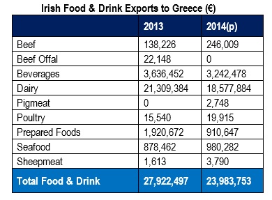 Ireland exported almost €24m worth of food and drink to Greece in 2014 – down 14% on 2013.