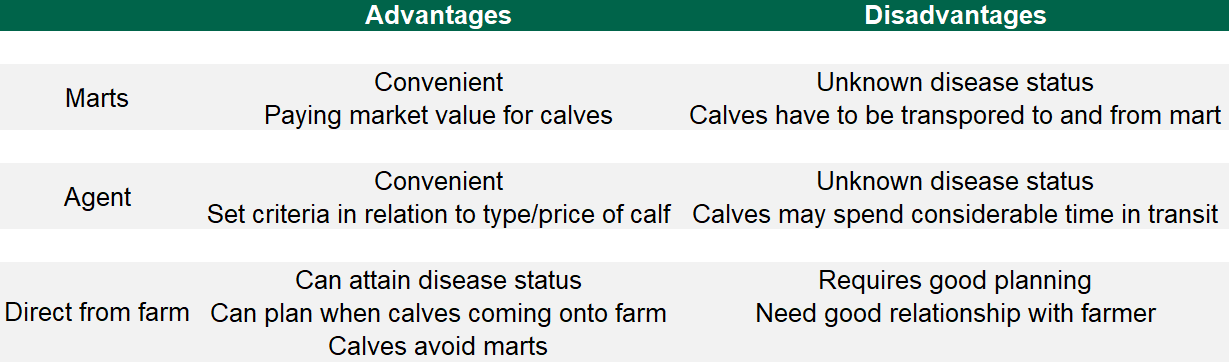 Ideally, farmers should purchase calves from a known source. It is important that the farmer knows the health and vaccination status of the herd.