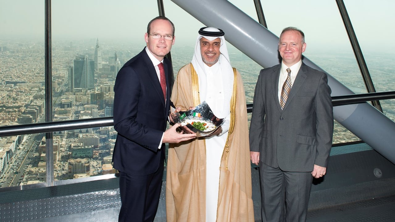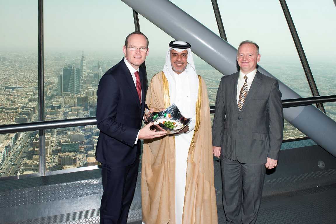 Pictured on the top of the Kingdom Tower today in Riyadh are the Minister for Agriculture, Food and the Marine Simon Coveney TD, Kevin Lane, Chief Executive, Irish Dairy Board and Saeed M. Bajuwaiber, Chairman, Al Wazeen.