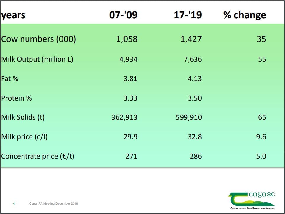 Looking at the figures, overall there has been a significant increase in cow numbers – by 35% – and an increase in milk output – by 55%.