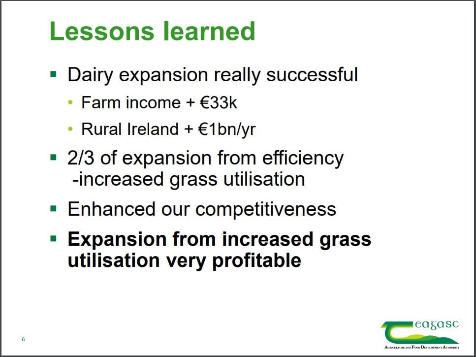 “Dairy expansion has been really successful. It has increased farm income and has generated about €1 billion/year spread throughout rural Ireland,” he stressed.