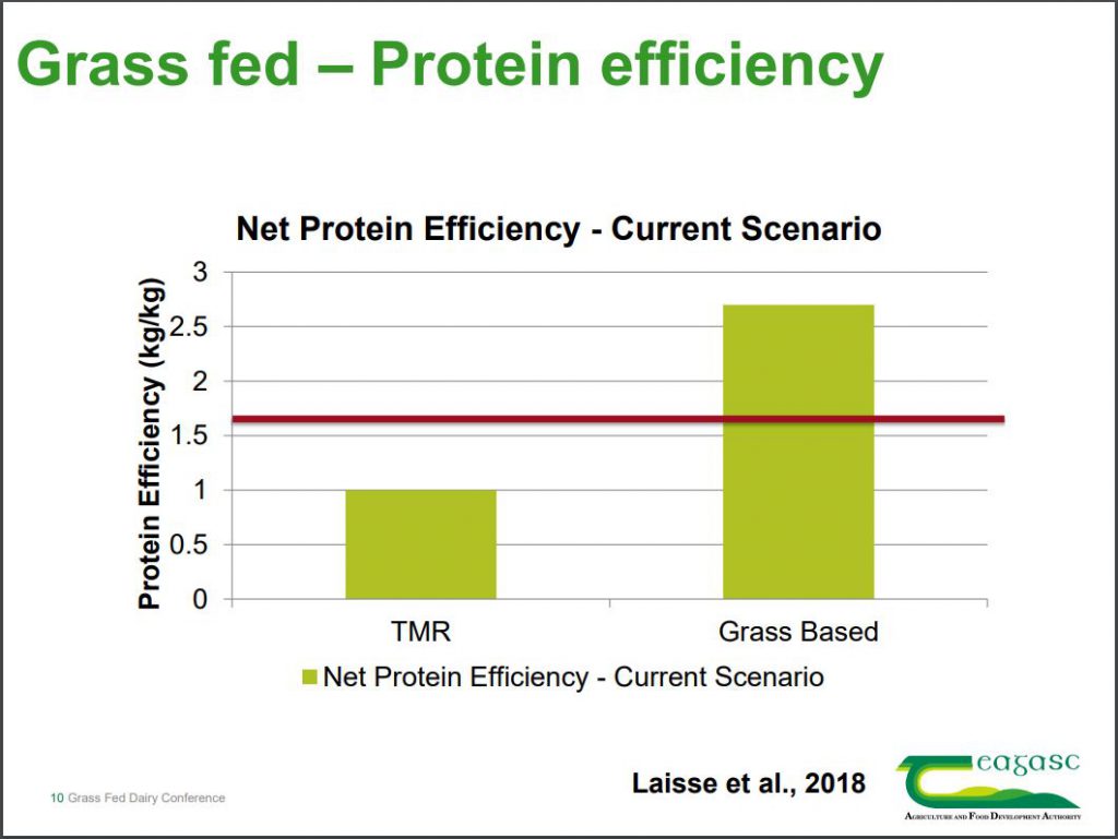Whereas internationally, he stated: “Grass-based systems produce about 2.5kg of protein per kg of protein consumed; but if you look at the Irish system, which is even more efficient, it’s about 4kg of protein per kg of protein consumed.”