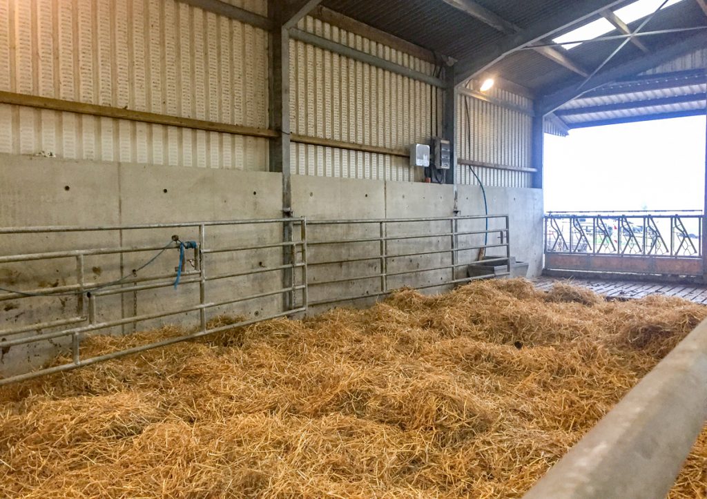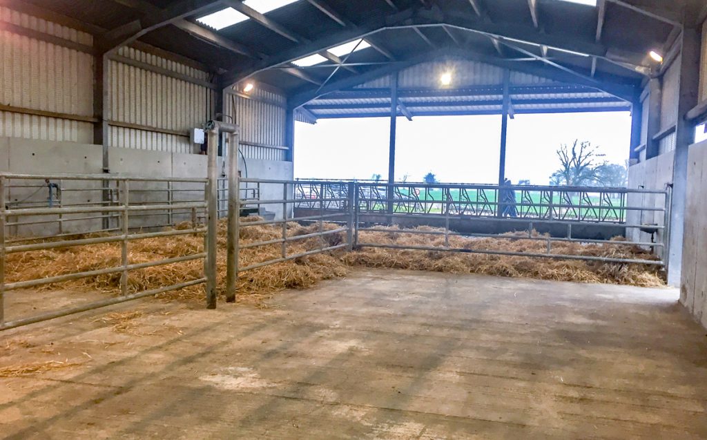 The front of the shed, where cows eat silage, has a slatted floor. However, the remainder of the shed is finished with a smooth concrete floor.