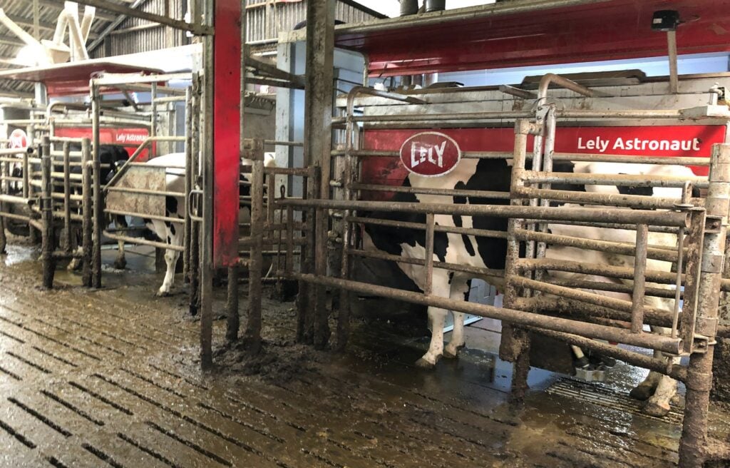 The robots have allowed them to increase production through housing the cows all year round and by maximising the milk output from each individual cow – through increasing the number of milkings/robot.