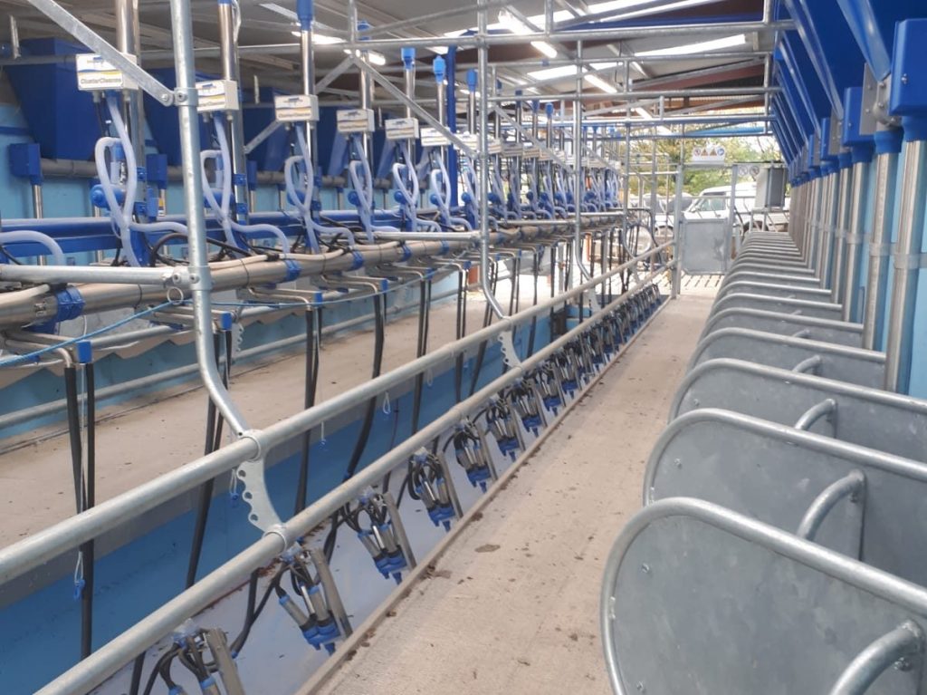 The parlour has 2ft 6in centres and is equipped with cluster cleanse, automatic feeders, an auto-washer, a variable speed vacuum pump, and air gates at the back.