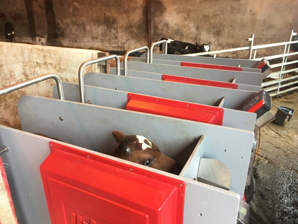 Calf rearing is kept to a high standard on the farm. When the cow calves she is brought into a nearby crush and milked with a portable milking machine unit. The calf is then removed and stomach tubed with 3-4L of colostrum.