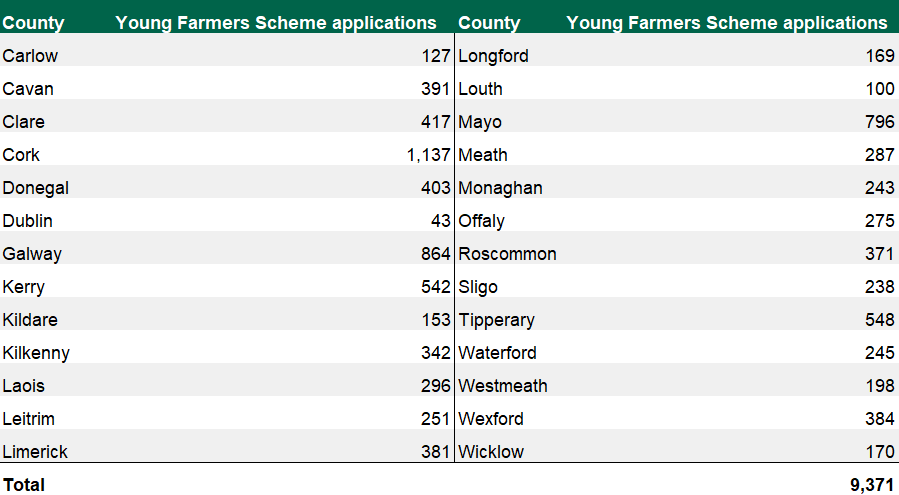 The total number of farmer applicants for the 2018 Young Farmers Scheme is 9,371, with a varied spread of young farmer applicants from around the country.