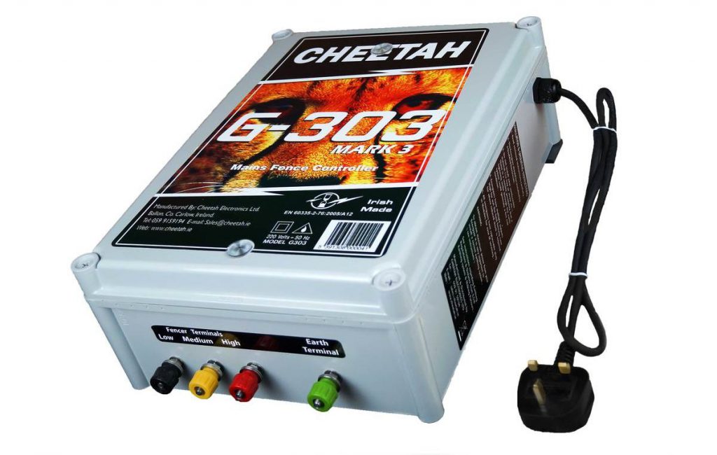 The Cheetah G303 Mains Fencer is an ideal fencer for the protection and control of livestock on large farm boundaries. This fencer will control bulls, cattle, sheep and large boundaries.