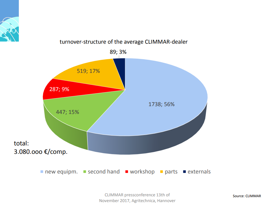For the ‘average’ CLIMMAR dealer, 56% of turnover came from new equipment sales – namely tractors and machinery.