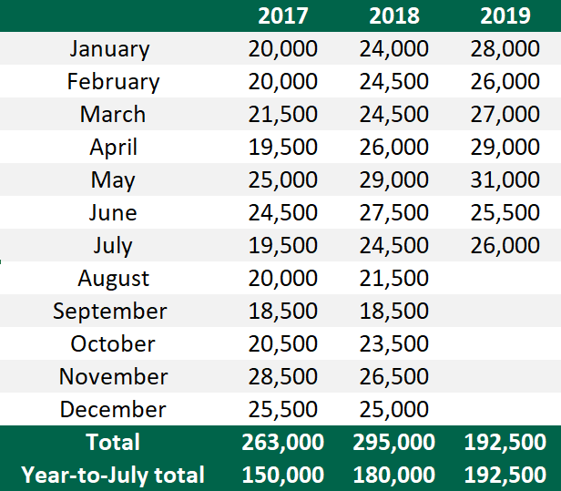 These figures show that the number of killed cattle coming from department-defined feedlots has increased by approximately 12,500 – rising from 180,000 in the first seven months of 2018, to 192,500 for the same period in 2019.