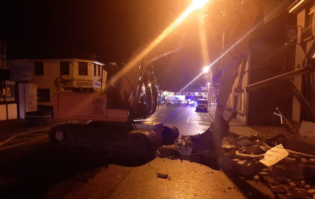 A digger was left behind on the main street in Dunleer, Co. Louth after the attempted theft of an ATM in the small hours of this morning, Wednesday, January 15.