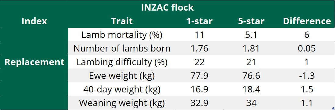 Fiona also presented data from the INZAC flock in terms of the differences witnessed between 5-star and 1-star ewes on the Replacement Index.