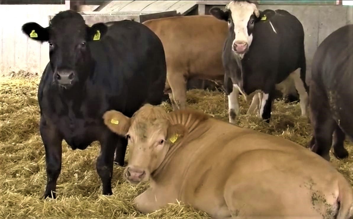 Cattle are batched as they come on to the farm and are fed on home-grown barley; highly digestible, energy-dense and protein rich grass silage; and a home mix that incorporates maize, distillers, bread and straw.
