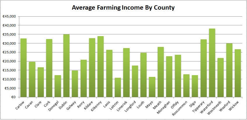 A report on the farming sector for 2014 by the Revenue, published in July of this year, found that the average income for farmers in Leitrim was €10,823 compared to the average income for farmers in Waterford which was €38,115.