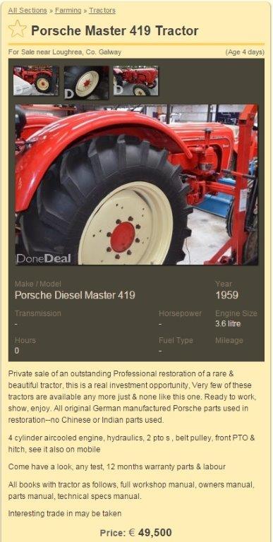 An amazing Porsche Master 419 tractor is for sale on Done Deal, for €49,500.