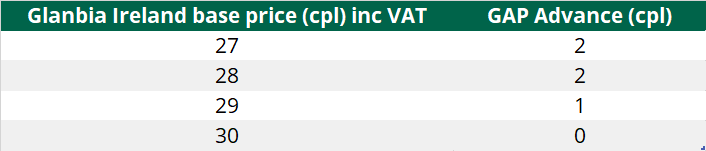 “Participation in this voluntary scheme allows members to draw down cash flow support from the GAP Scheme when the Glanbia Ireland (GI) market price for manufacturing and liquid milk falls below specific levels or ‘price triggers’.