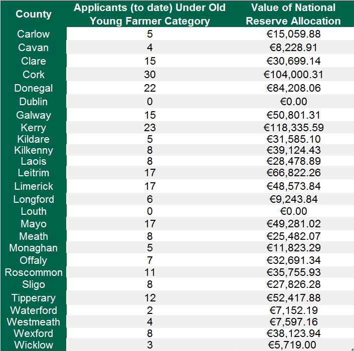 Co. Cork had the highest number of applicants to the scheme, with 30 old young farmers applying, and they were allocated €104,000.31.