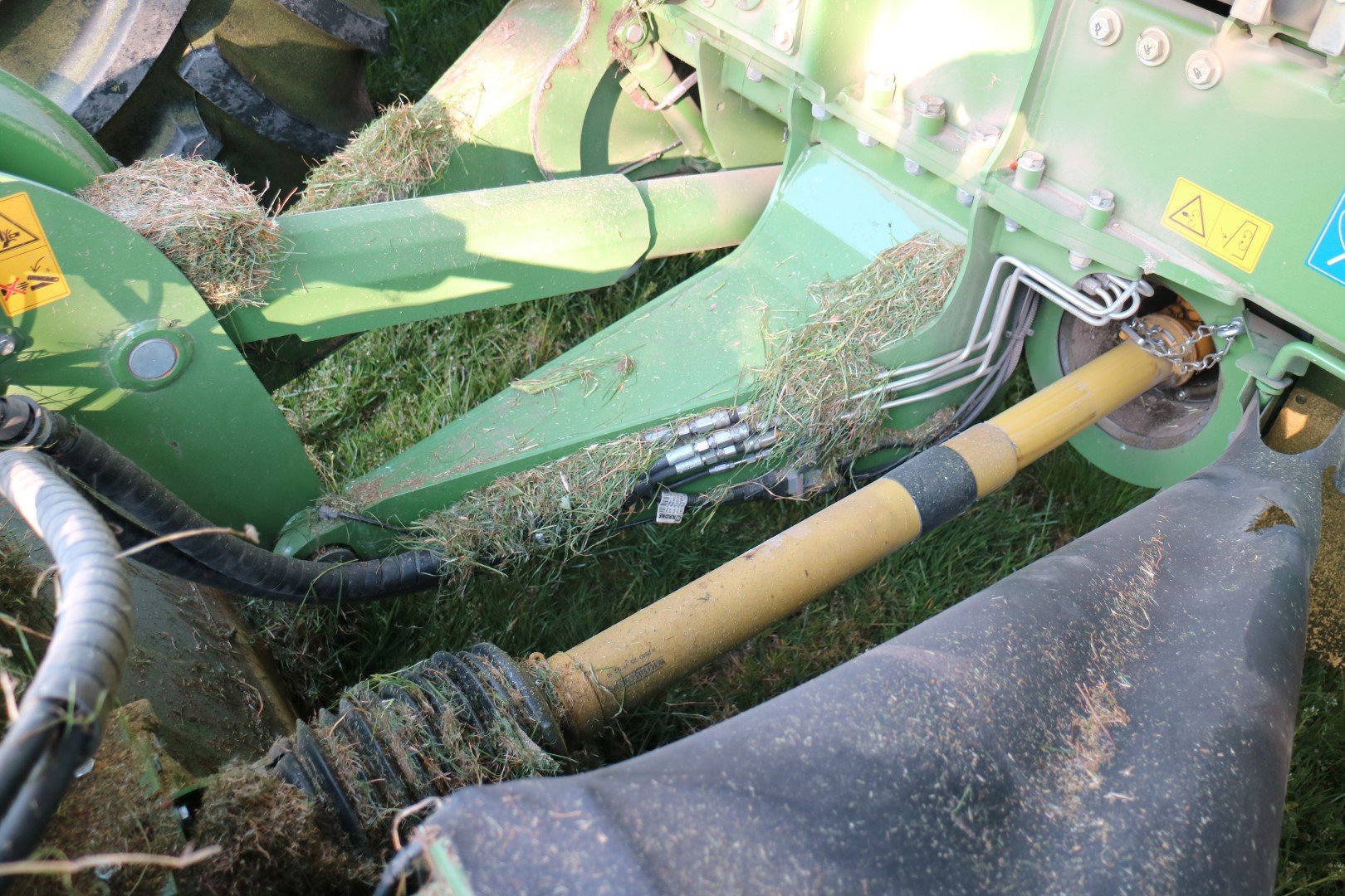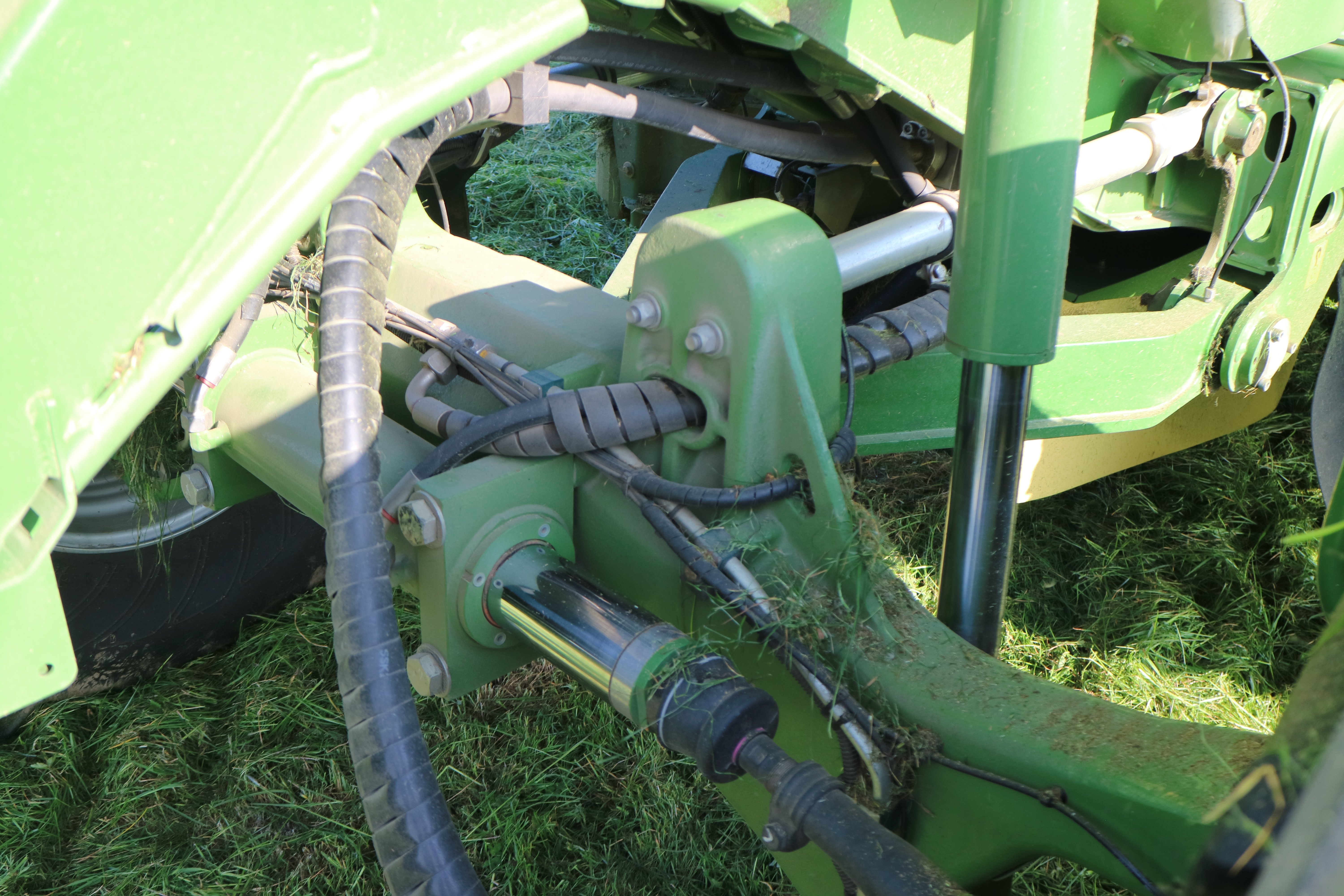 At the business end, mowing capacity has been stretched to 9.95m – and also redesigned in the process. The front mower is no longer mounted on a triangular frame, but is now directly mounted onto the machine via a 3-point linkage design – similar to that found on the EasyCut F320 CV.