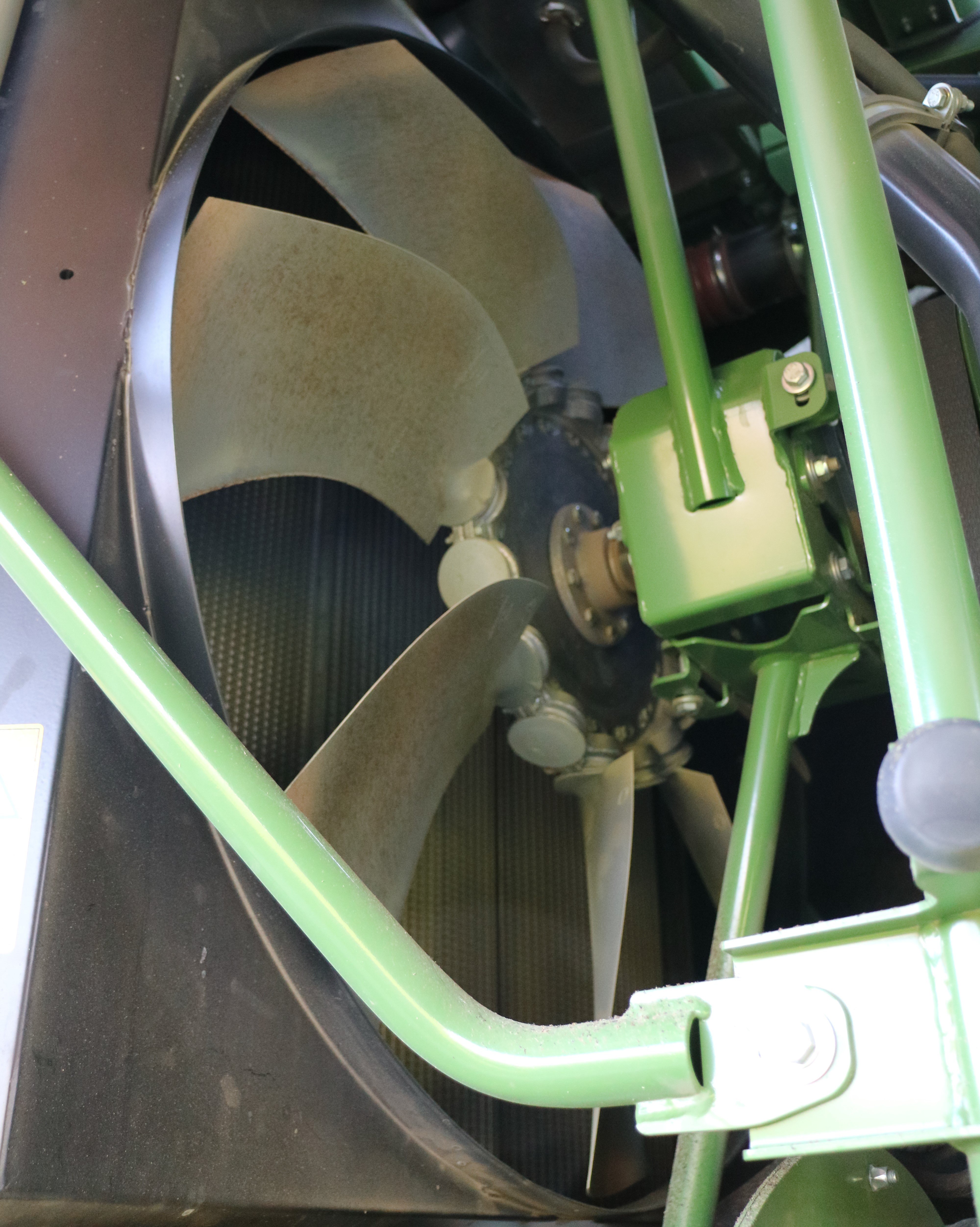 There are two engine operating modes – 1,500rpm at 40kph for the road and 1,700rpm up to a speed of 25kph when mowing in the field. A larger cooling unit is fitted with a ‘passive’ front rotor and ‘active’ exhaust to keep it clear of dust.