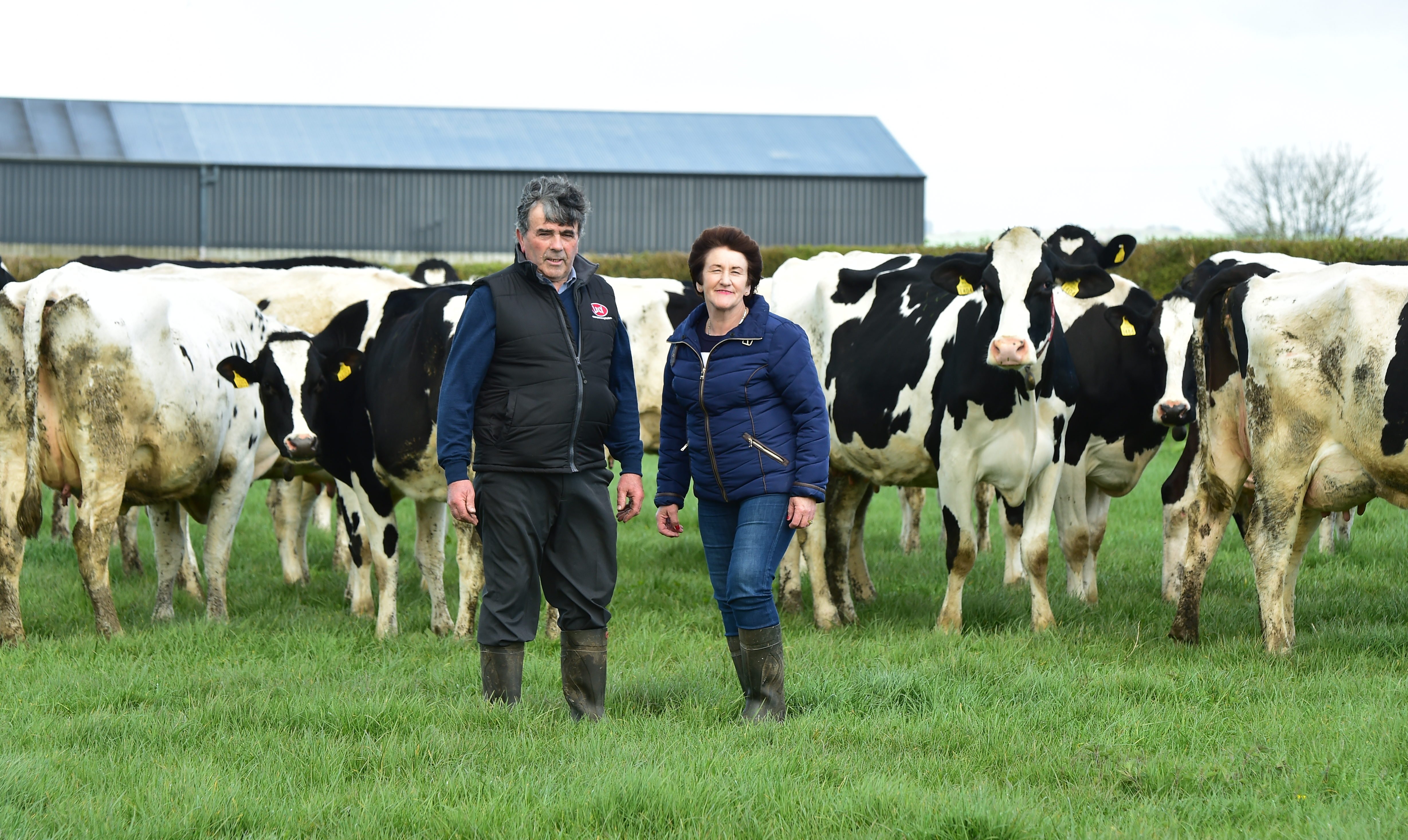 They are currently milking 70 pedigree Holstein cows using a mixed autumn and spring-calving system. The cows are currently consuming an average of 5kg/day of concentrate and are producing 35L of milk at 3.3% protein and 4.0% butterfat.
