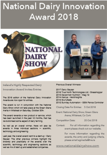 Entries to the 2018 National Dairy Innovation Awards – which are run in conjunction with the National Dairy Show – are now being welcomed.