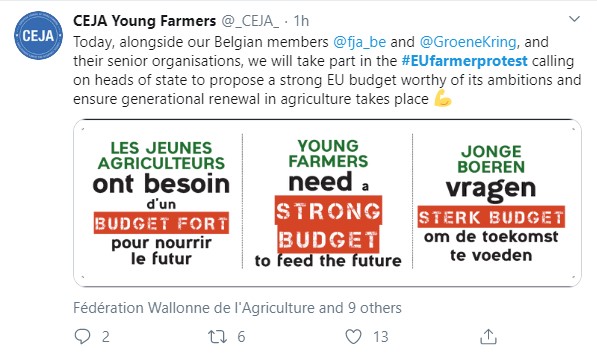 Alongside its Belgian member organisations – Fédération des Jeunes Agriculteurs, of Wallonia, and Flemish young farmer group Groene Kring – CEJA is calling for a strong budget to ensure the ambitions of the new commission are met and generational renewal in the agriculture sector takes place.