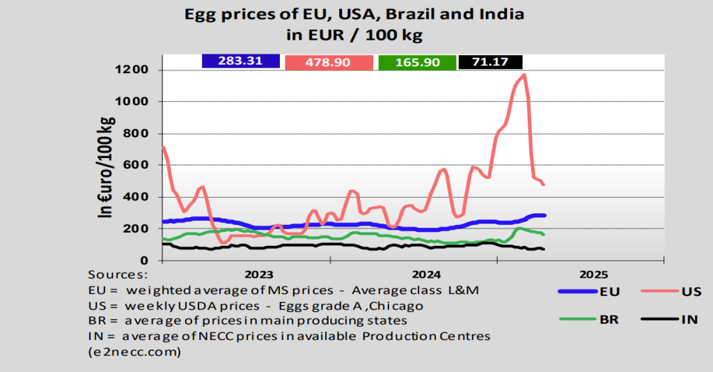 Egg prices have registered increases so far in 2025 (3.4% in January and 4.1% in February) compared to the same periods in 2024, according to the Eurostat data.