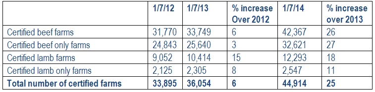 Bord Bia says the unprecedented rise is due to factories requiring QA animals and the fact that there is now a increased the price differential between QA and non QA animals. There are currently some 44,914 member of the scheme an increase of 25% since July 2013. When the figures are compared to July of 2012 the membership of the scheme is up by over 11,000.