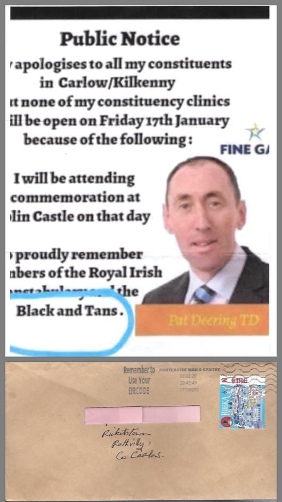 “About three weeks ago around the time of the proposed RIC commemoration, somebody put a poster on Facebook impersonating me saying ‘I wouldn’t be doing clinics on January 17, my office would be closed because I was going to Dublin Castle to celebrate the Black and Tans’.