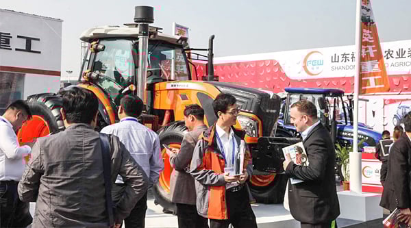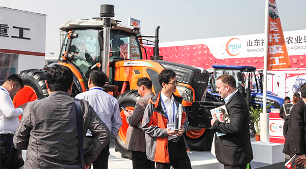 The tractor, along with other similar units on the same stand, is built in China. It bears more than a passing resemblance to some current Fendt models. The cab is admittedly very different, but the bonnet (hood) bears a striking similarity.
