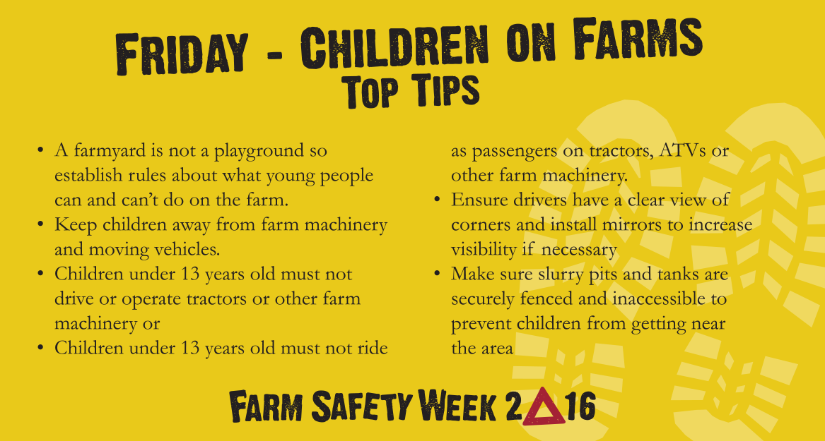 Today marks the final day of Farm Safety Week 2016 supported by the Farm Safety Foundation, Farm Safety Partnerships, the Health and Safety Executive, Health and Safety Executive for Northern Ireland and Health and Safety Authority, Ireland and today reminds us that farming is not child’s play.