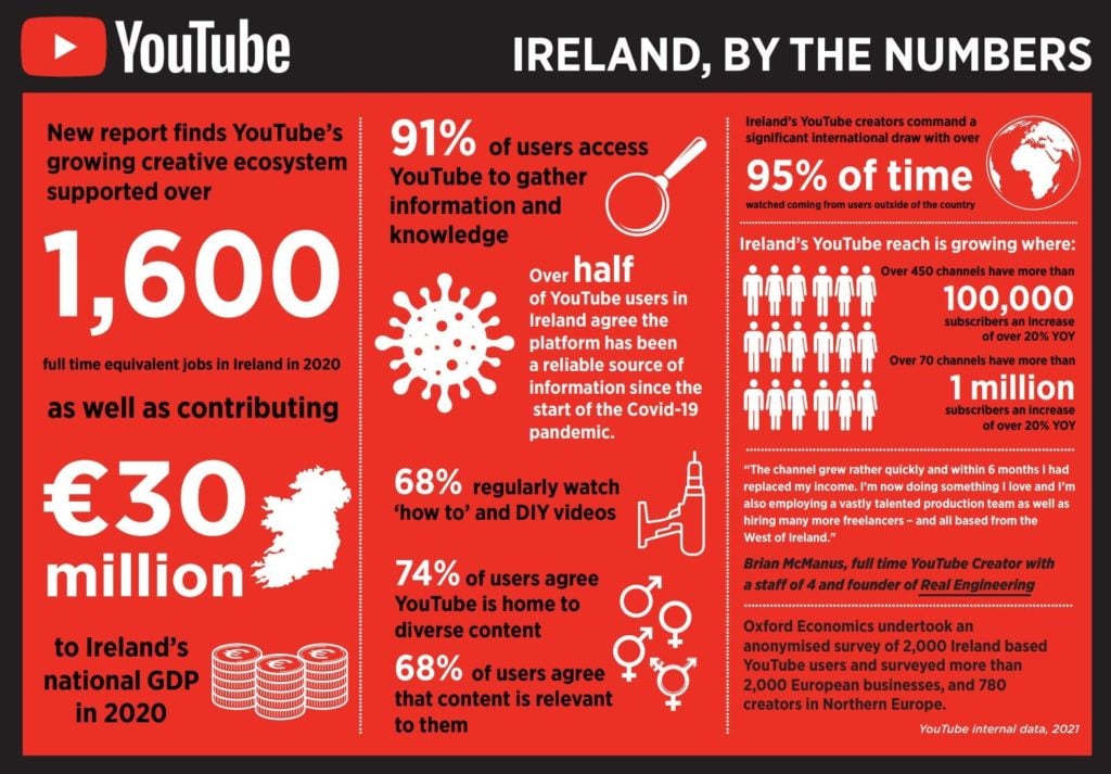 Developed in partnership with Oxford Economics, the report assesses the economic, societal, and cultural benefits of the world’s most popular video hosting website in Ireland.