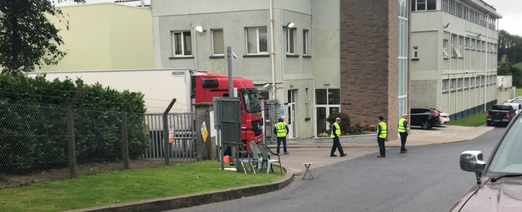 Not all lorries stopped for this though. One curtain-sided cargo lorry avoided the protesters altogether by entering the Grannagh facility on the wrong side of the road.