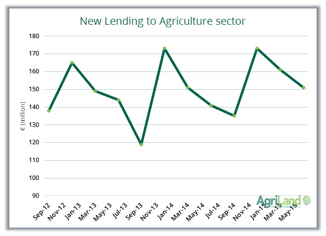 New lending and outstanding loans in the primary agriculture sector for the three years to the end of June this year, has been fairly consistent over the last three years, averaging €150m per quarter.