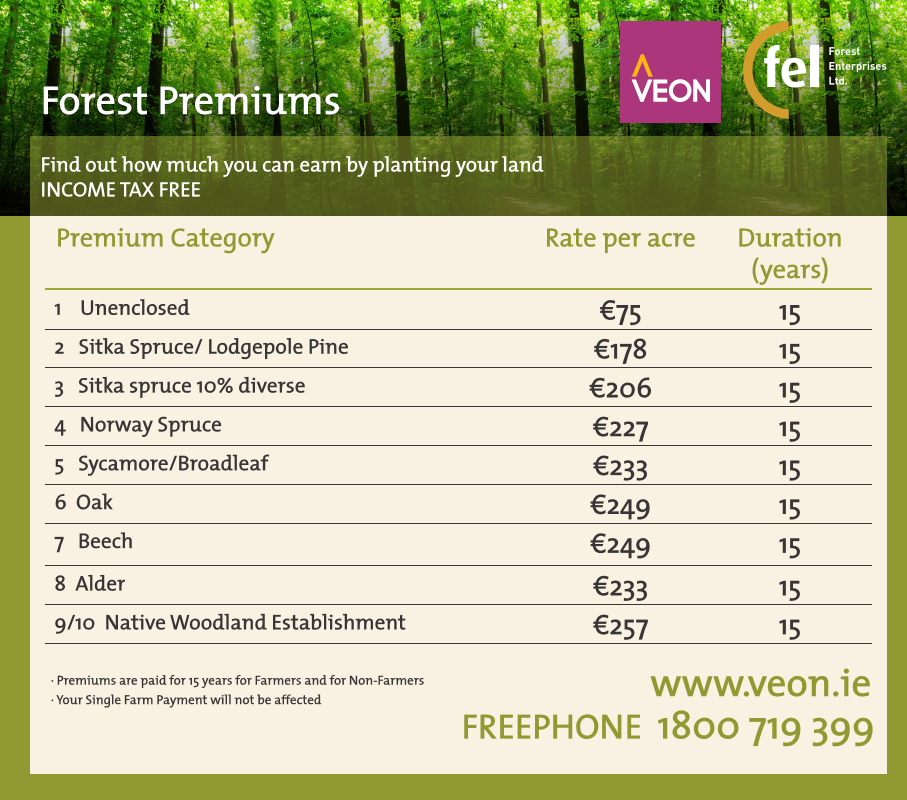 Forestry is tax efficient. The forest premium and timber income are free from income tax. Stamp Duty and Capital Gains only apply to the land not the timber and forestry qualifies for agricultural relief for inheritance tax.