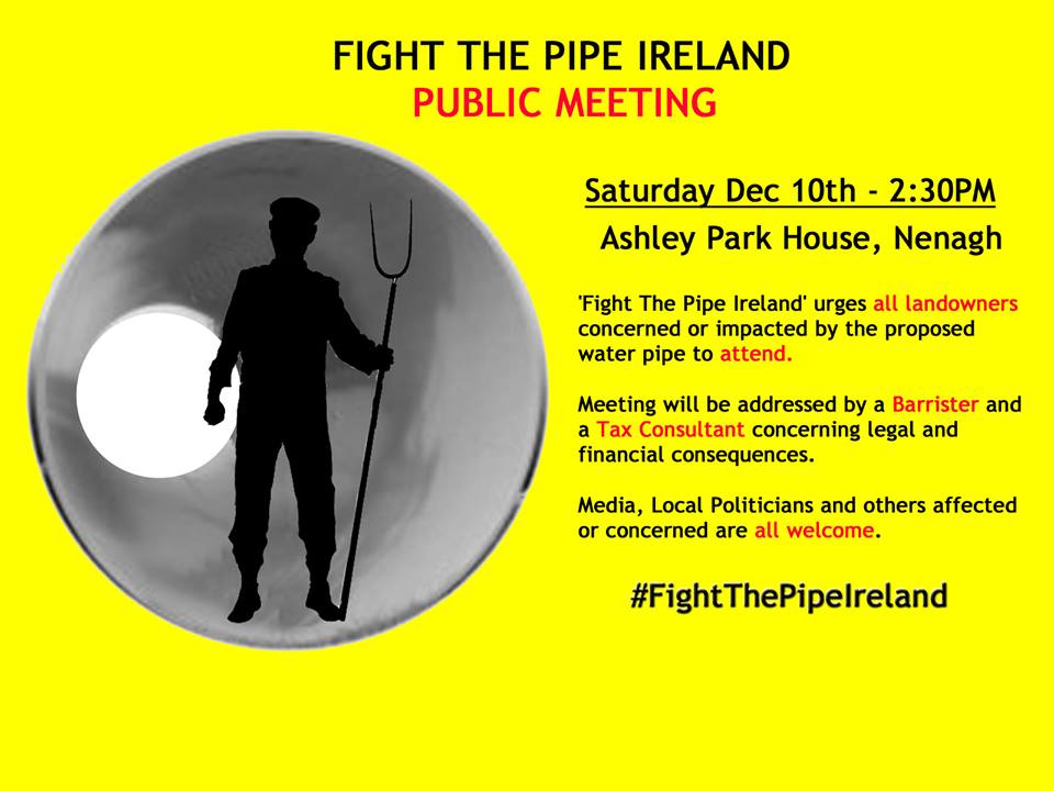 ‘Fight The Pipe Ireland’ urges all landowners concerned or impacted by Irish Water’s proposed pipeline to attend.