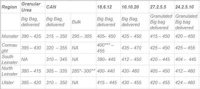 Farmers need to be extremely vigilant when purchasing bulk fertiliser (either delivered bulk or bulk spread), the IFA has warned in its most recent fertiliser price update.