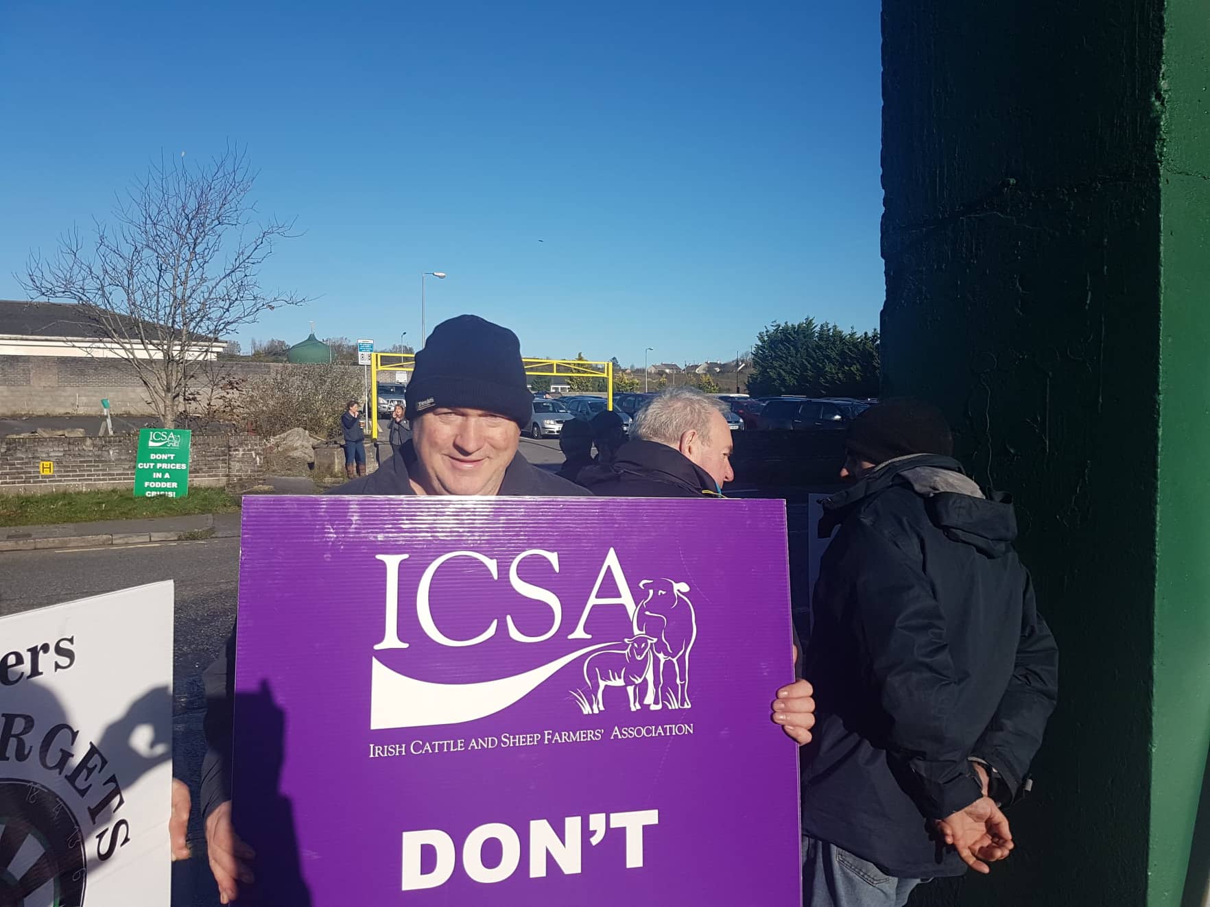 ICSA president Patrick Kent explained that farmers are protesting outside Dawn Meats to highlight the fact that beef farmers are not getting a justifiable price for their product.
