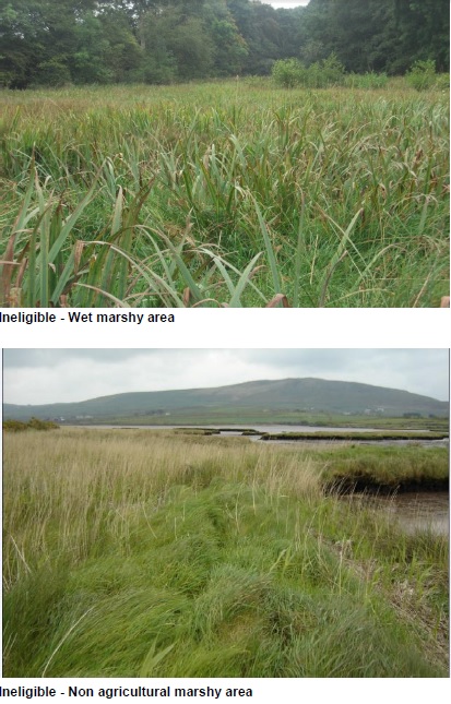 Areas which are permanently too wet for animals or machinery to enter, are not eligible and must be deducted in full from the parcel area.