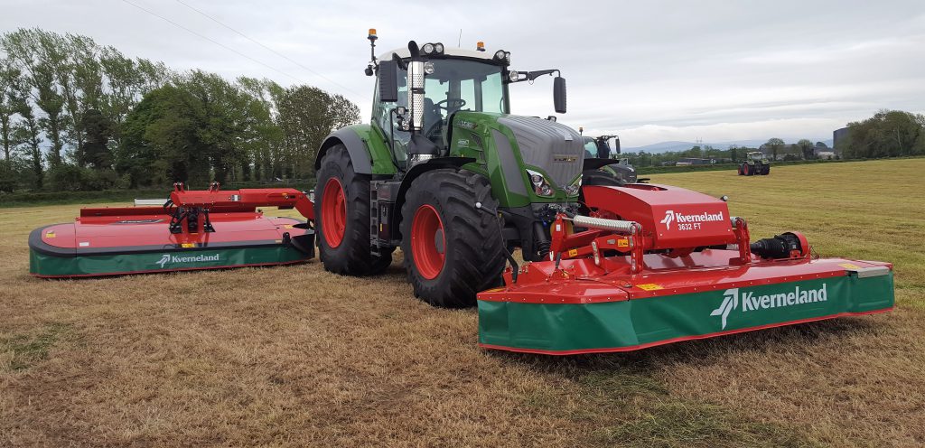 While the day was very much about green-liveried equipment, this giant Kverneland (triple-unit) mower (pictured below) did manage to find its way in – presumably because Fendt doesn’t yet have a direct competitor for a machine of this exact size and specification.