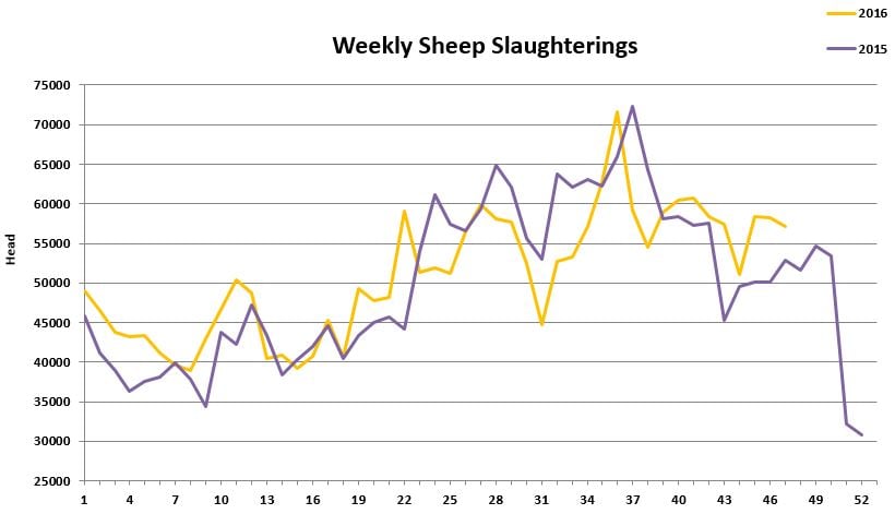 Some 1,076 fewer sheep were slaughtered in approved export plants during the week ending December 4, figures from the Department of Agriculture’s sheep kill database show.