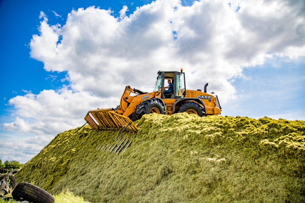 There’s a lot of investment tied up in it – from the 2009 Krone Big M MkII to the 2015 Case 721F loading shovel; and from the 12 tractors right through to the two 13t tracked machines that Pat looks after (a Case CX130C and a Hitachi EX135).