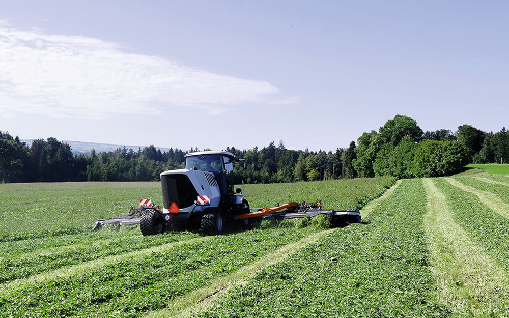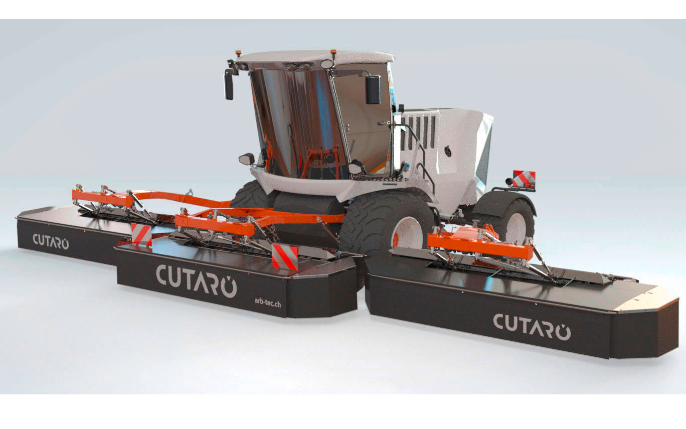 Developed by ARB-Tec of Switzerland, it has an 11m cutting width with infinitely adjustable disc speed and a weight of just 8.5t.