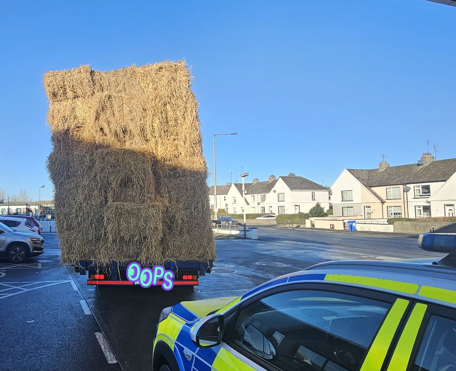 Gardaí recently encountered a driver who was transporting a trailer with a large load of unsecured straw bales in the Leggettsrath area of Co. Kilkenny.