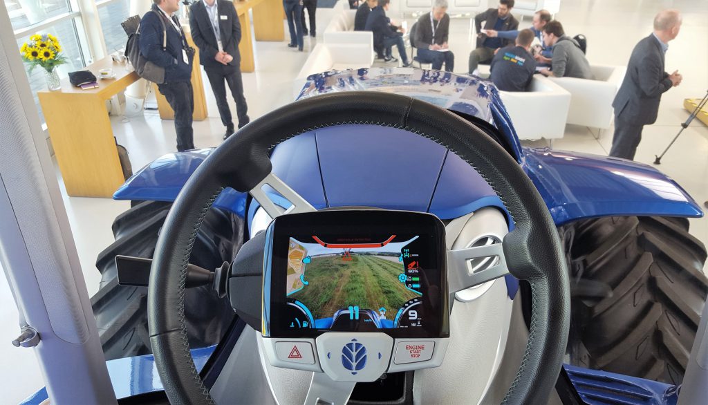 Three years hence, production-spec versions will be based on New Holland’s T6-size platform – most probably models equivalent to the current T6.155 and T6.180.