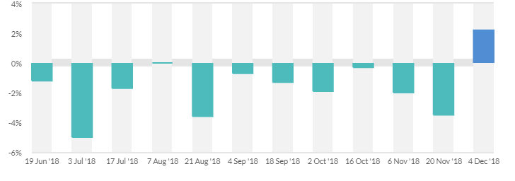 The only product on the day to see a decrease was cheddar (Ched), while all the other products experienced a rise.