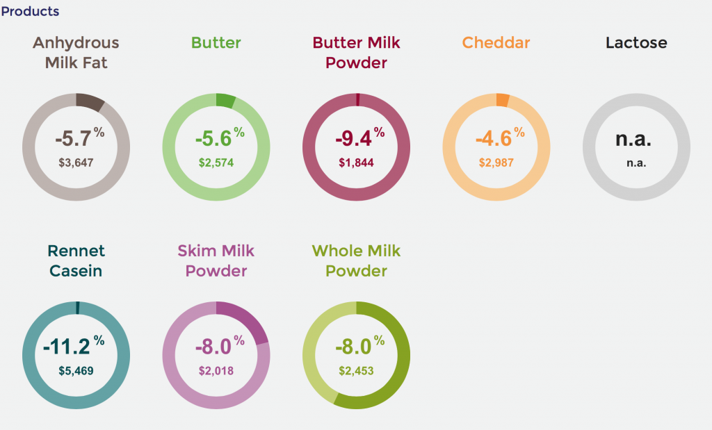 Prices at the latest Global Dairy Trade auction have fallen on the last event.