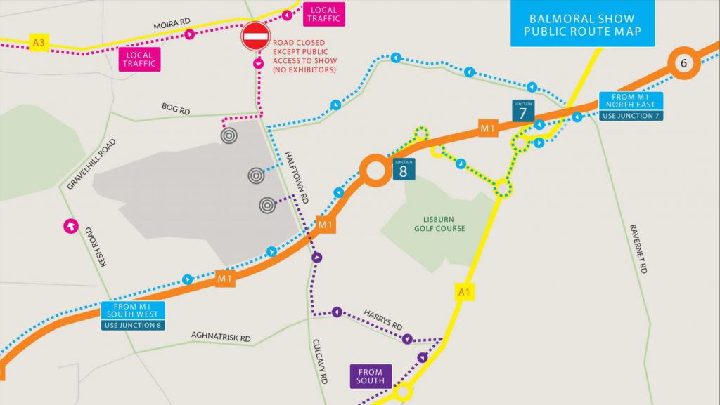 There is no planned one-way system but the PSNI will be directing local traffic as required. Traffic from different origins will be directed to the show on different routes and will enter the showgrounds by various gates.