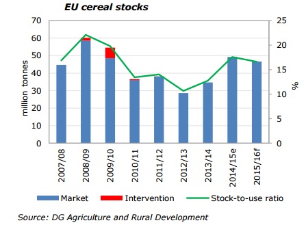 Maize stocks, it says are to decline by 6.7% bringing the stock-to–use ratio from 20% to a still ‘comfortable’ 19%, the Commission says.