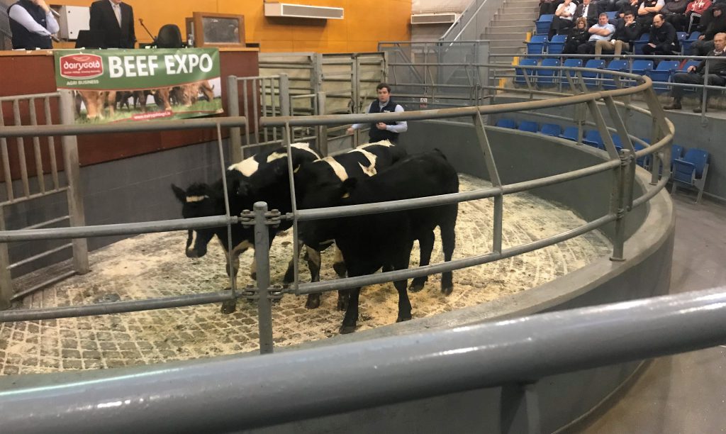 The first cattle that entered the ring were two Friesian bullocks, born in February 2017; they weighed 490kg on average.